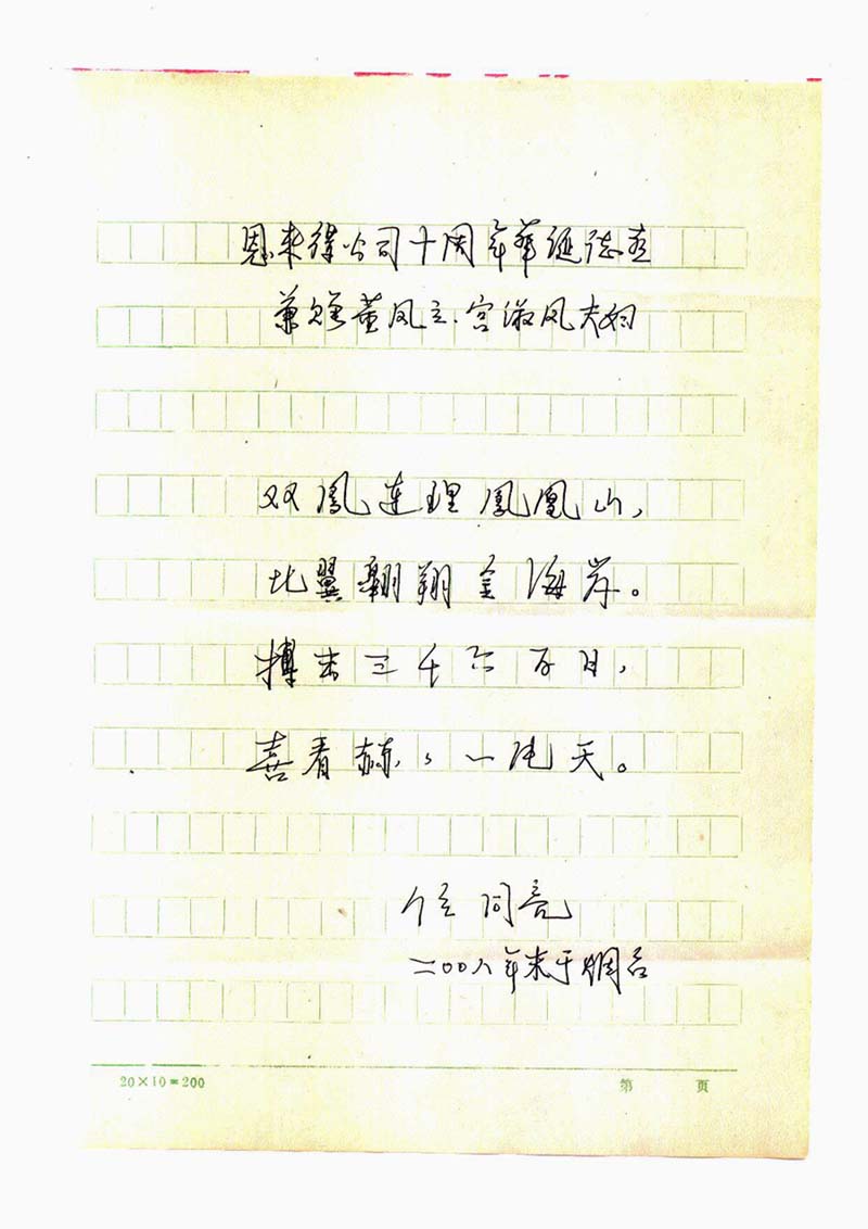 前莱阳市市长、烟台市社联主席、作家位同亮先生为董事长夫妇题诗祝贺