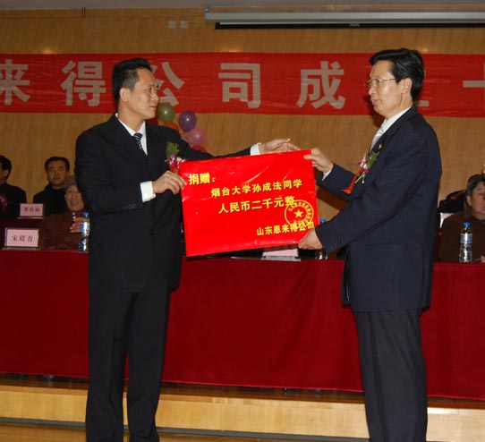 董事长董凤立为烟台大学孙成法同学捐赠两千元人民币
