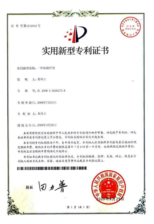 专利号:ZL 2008 2 0026274.8的恩来得托玛琳自发热保健护颈是由纳米功能陶瓷粉及特殊的热感应材料复合而成的生物热炙片,以其独特技术和功效深受消费者好评。