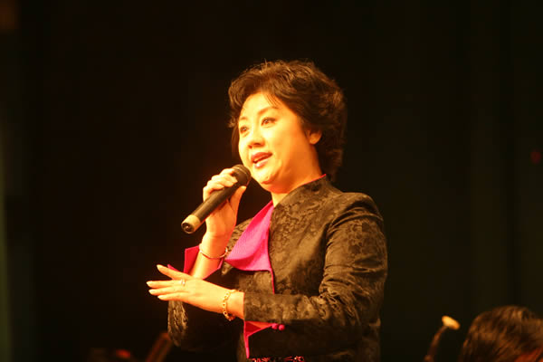 图为烟台市京剧院董翠娜院长在京剧演奏会上演唱