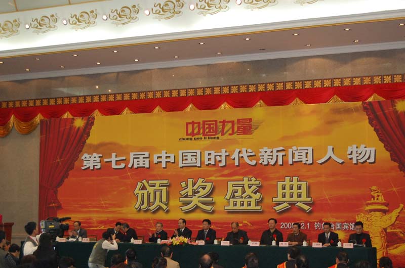 中国力量·第7届中国时代新闻人物颁奖盛典于2008年12月1日在钓鱼台国宾馆隆重举行,全国政协副主席郑万通,十届全国政协副主席张怀西,中国出版工作者协会主席、国家新闻出版总署原署长于友先,全国政协教科文卫体委员会副主任王巨才,中共中央党校三农问题研究中心主任张虎林,中国报告文学学会常务副会长、影响力人物专家指导委员会主任周明,中华文化发展研究中心理事长、全国政协文史办原主任马威,中国经济报刊协会副会长兼秘书长王兆平,中华工商时报副总编辑王德颖,经济日报《名牌时报》总编辑王小伟,影响力人物杂志社总编辑、中国时代新闻人物征评活动组委会秘书长刘学文等有关领导出席会议并颁奖,来自全国各地的200多名新闻人物代表和作家、书画家、艺术家代表出席了这一盛会。