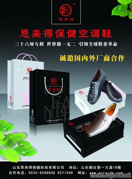 最近,一双拥有36项国内外专利、历经27年时间研发、先后由5个厂家参与、总投入已达3000万人民币、体现了新健康主义生活理念的恩来得保健空调鞋,终于在山东烟台研制成功,近日将投放市场。