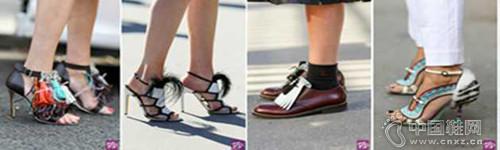 绒毛/破损/流苏:与以往季节的水晶点缀造型不同,本季触感流苏和吊穗被用在许多女鞋上打造充满活力的、夸张装饰和动感。(中国鞋网-最权威最专业的鞋业资讯中心。合作媒体: