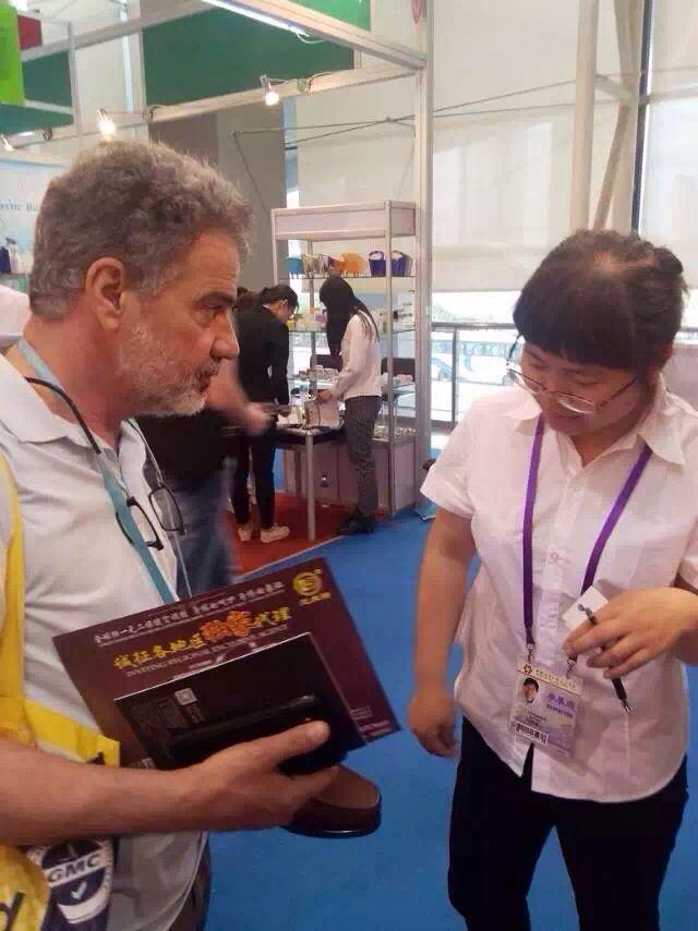 尽管忙忙碌碌难掩疲惫,但是董事长、总经理董凤立还是喜笑颜开的说:“今天客流量明显比第三天有点小,不过我们的展位还比较火,昨天进的是美元,今天收的是英镑!”