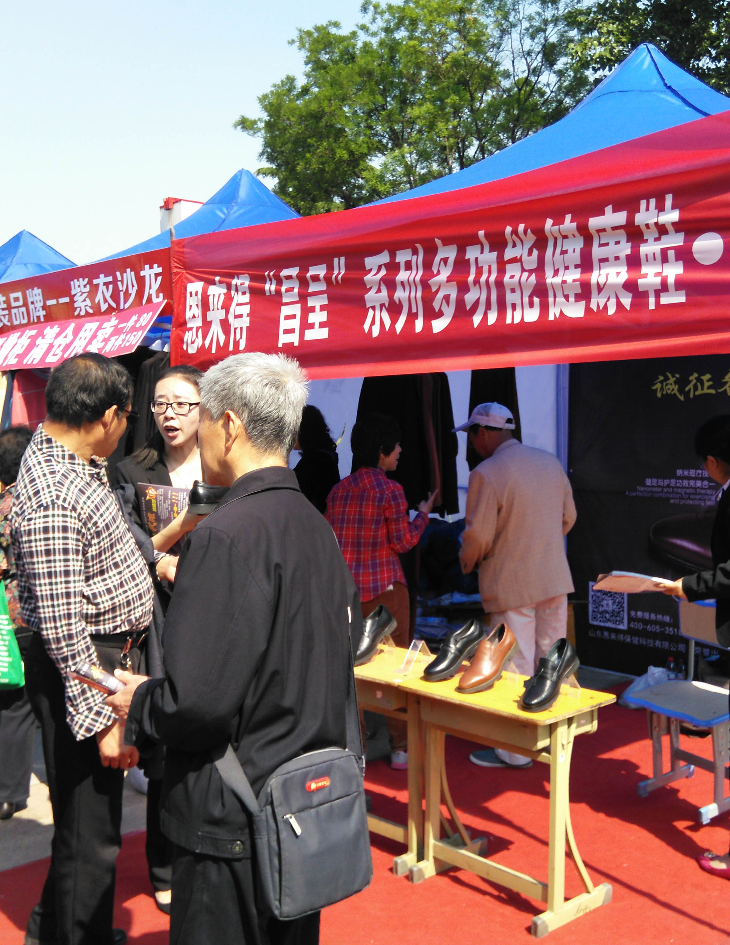 一位看上去近六十岁的长者,从工作人员手中接过宣传材料,兴冲冲的说:“是恩来得啊!我知道,我知道,你看看我脚上穿的就是你们的鞋,这是我六十大寿时儿子给我买的,这个鞋真是好,穿着不光舒服,我老腰腿痛的毛病也好多啦,真的谢谢你们哈!”恩来得市场部董部长忙说:“我们应该谢谢您大爷,感谢您对我们的信任,有什么需要的,我们可以登门给您服务。”