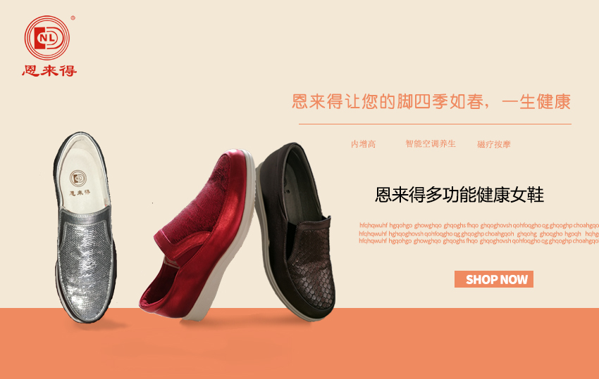恩来得多功能健康鞋必将以民族品牌、独特的保健功能、高雅优质、售后服务好,让消费者穿得起、穿得舒心、穿出健康、穿出自信和希望。
