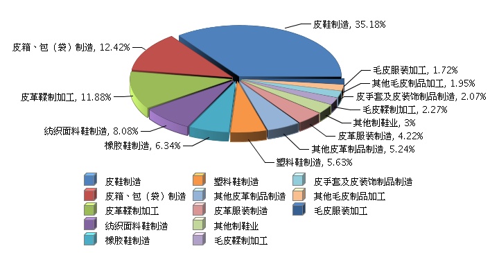 图2 2017年1~4月全国皮革行业累计主营业务收入行业小类占比情况