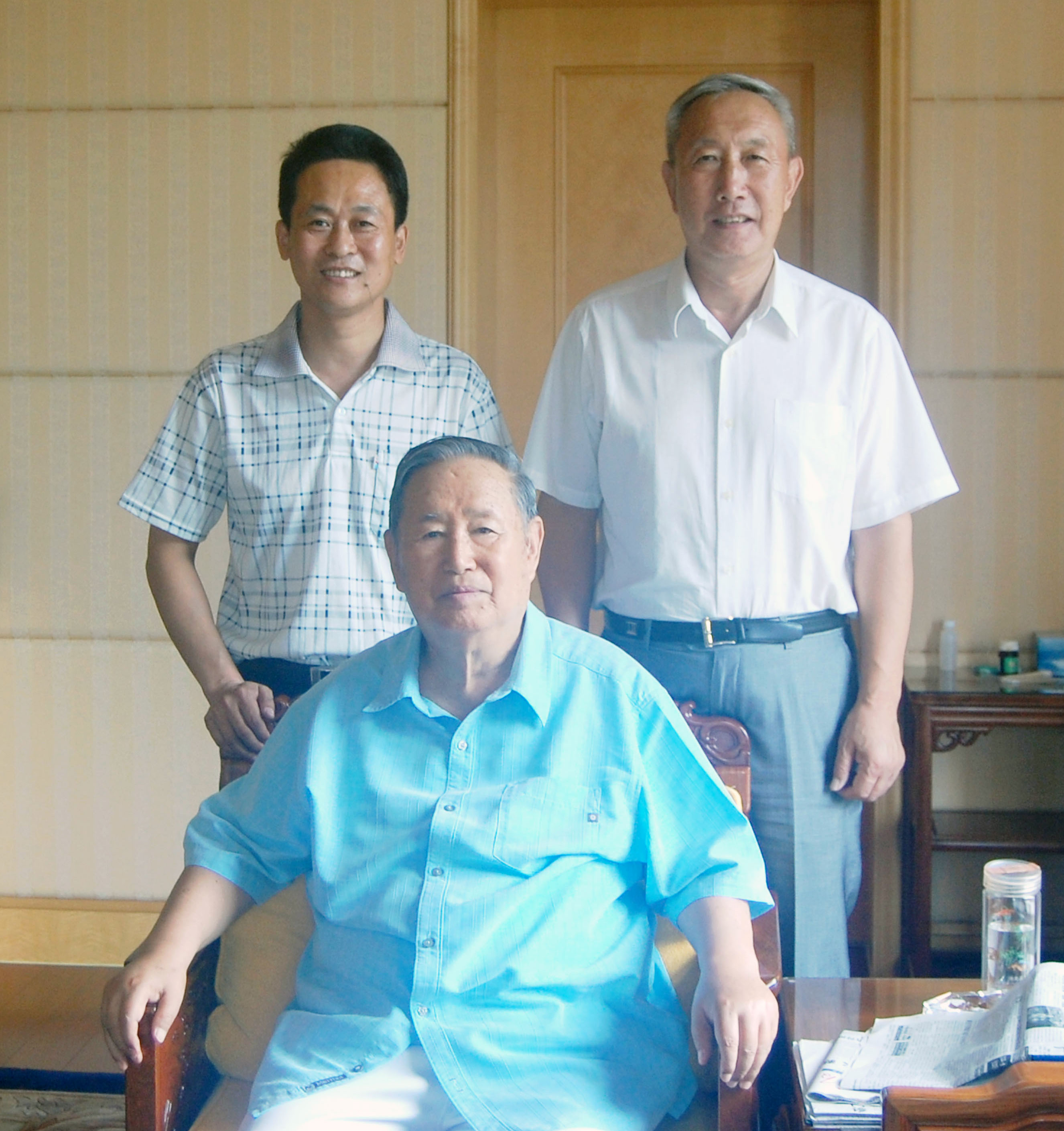 图片:前一为原全国人大常委会副委员长姜春云,后排右一为原烟台市人大副主任仇善强,左一为公司董事长、总经理董凤立。